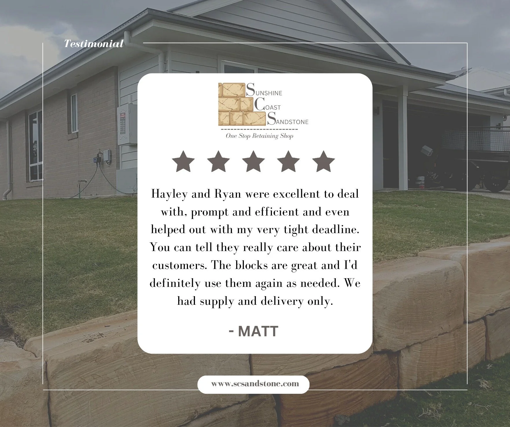 When you buy from Sunshine Coast Sandstone, you are choosing quality, convenience, and reliability.