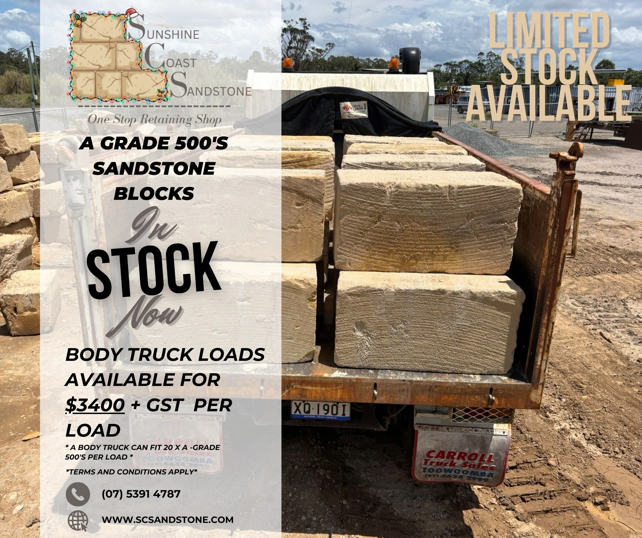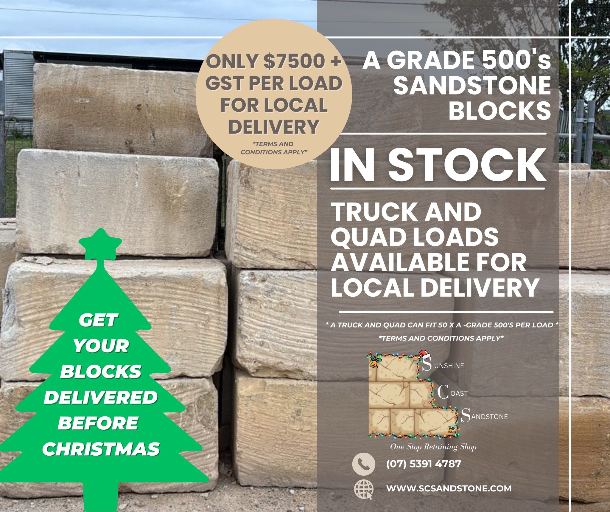 Premium sandstone blocks available now on the Sunshine Coast. Locally stocked, quality-checked, and delivered fast from our Forest Glen yard.